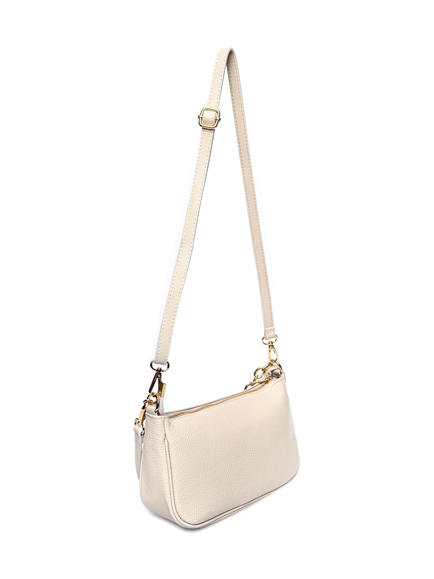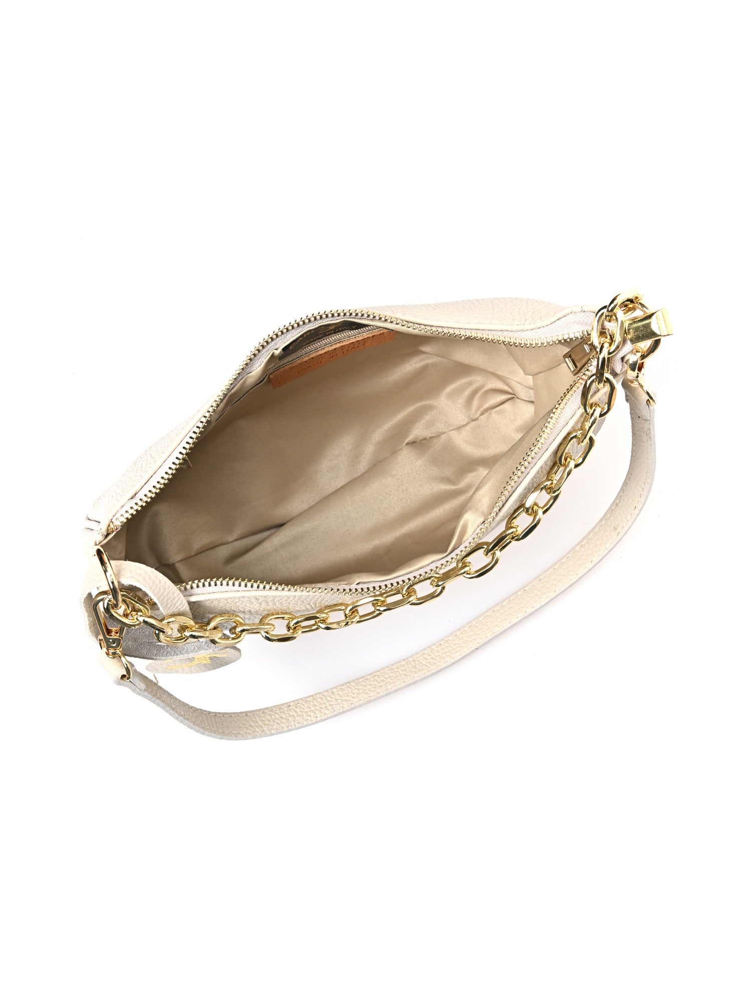 La borsa a spalla Carla Ferreri, realizzata in vera pelle di vacchetta, coniuga raffinatezza e versatilità. La chiusura superiore con zip e la tasca interna con zip offrono funzionalità, mentre la combinazione del classico manico da 50 cm e del manico a catena da 34 cm aggiunge un tocco di stile in più. La tracolla regolabile da 120 cm consente diverse modalità di trasporto. Con dimensioni di 16x25x7 cm, è l'accessorio ideale per completare outfit sia casual che eleganti.
