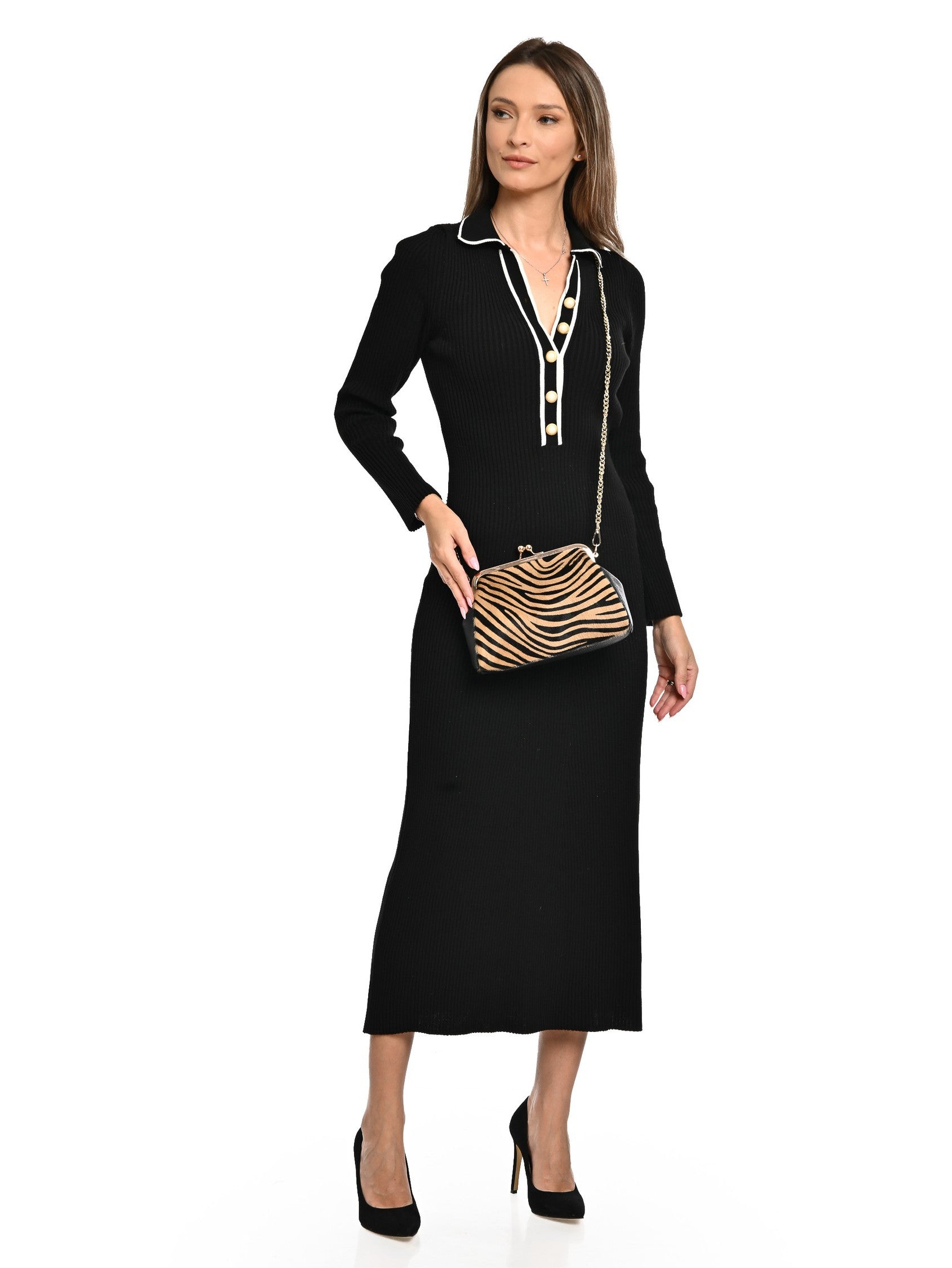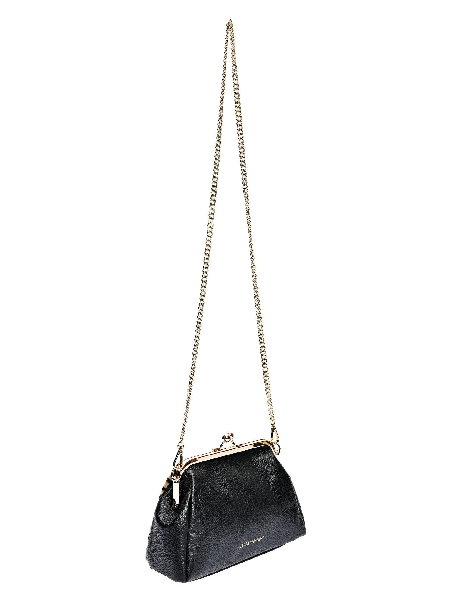 La pochette Luisa Vannini è un accessorio raffinato, realizzato in vera pelle e pelo bovino, che coniuga eleganza classica e funzionalità moderna. La chiusura con sistema kiss lock aggiunge un tocco di stile e sicurezza in più, conferendole un aspetto sofisticato. Le sue dimensioni di 16x21x4,5 cm la rendono compatta e facile da trasportare, adatta sia per eventi speciali che per l'uso quotidiano. La tracolla da 120 cm consente un comodo utilizzo, sia a spalla che a tracolla. Questa borsa versatile si abbina perfettamente a qualsiasi outfit, aggiungendo un tocco di stile ed eleganza in più.