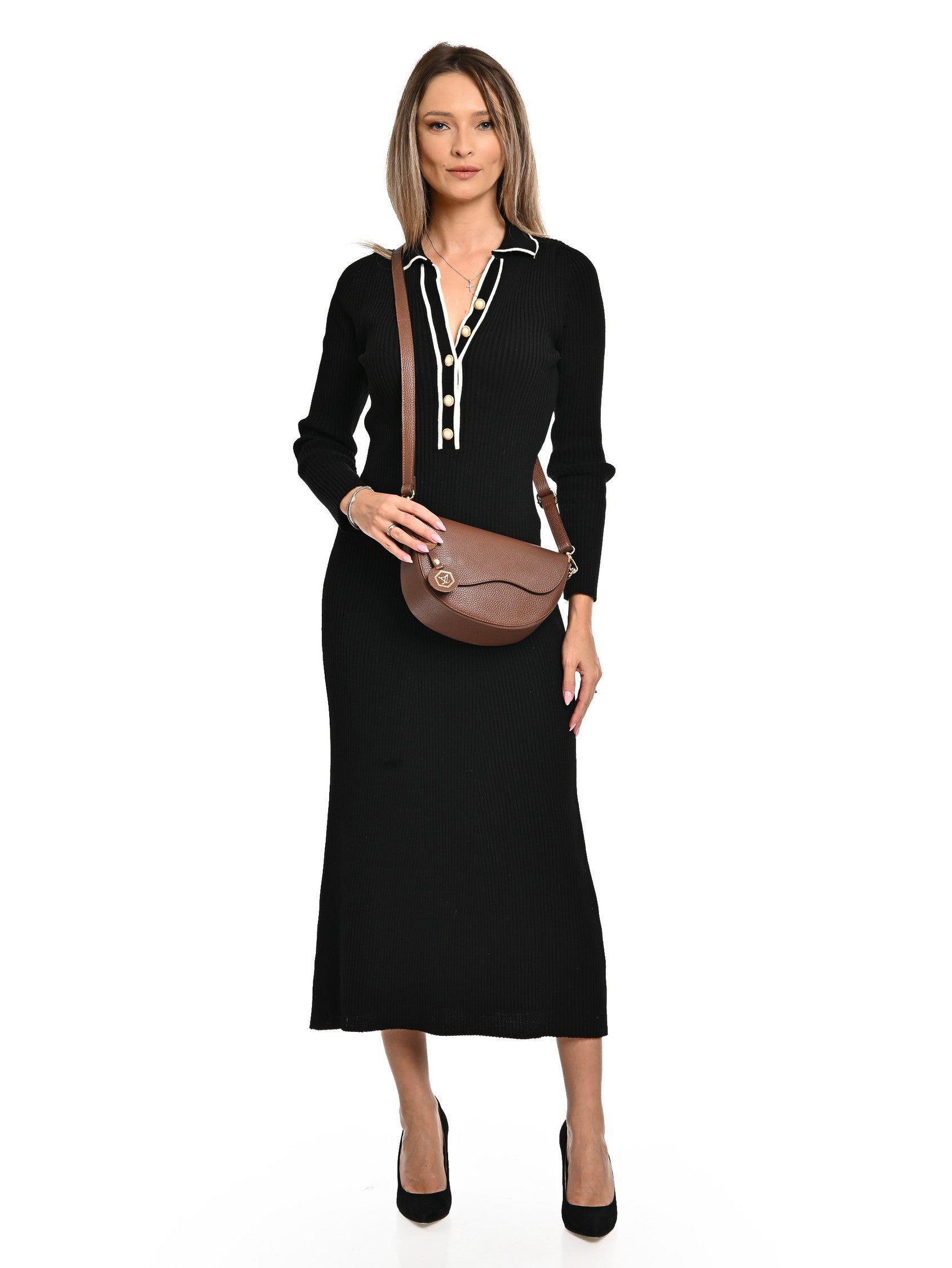Borsa a tracolla Henriette, vera pelle marrone