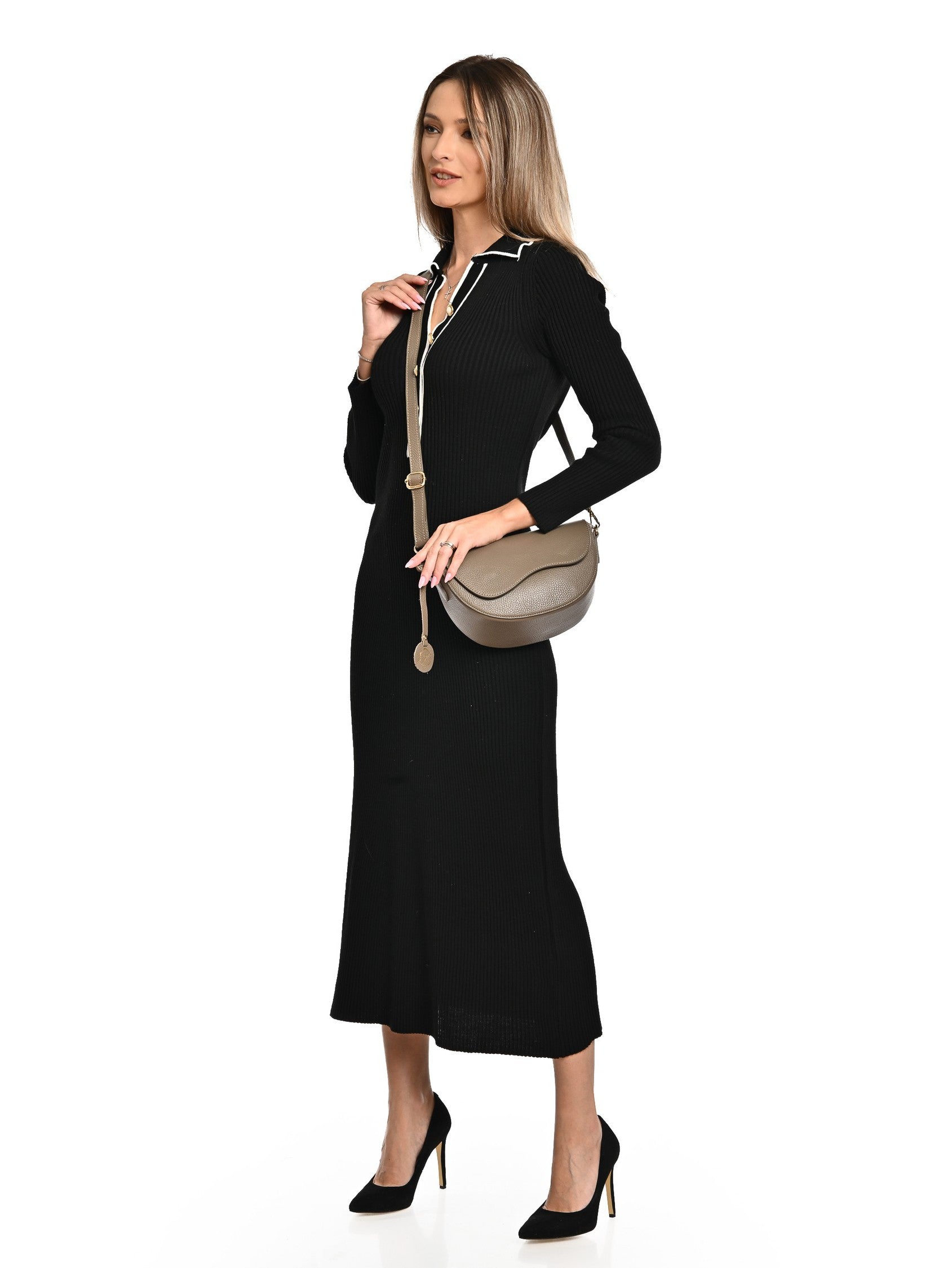 Borsa a tracolla Henriette in pelle naturale color tortora