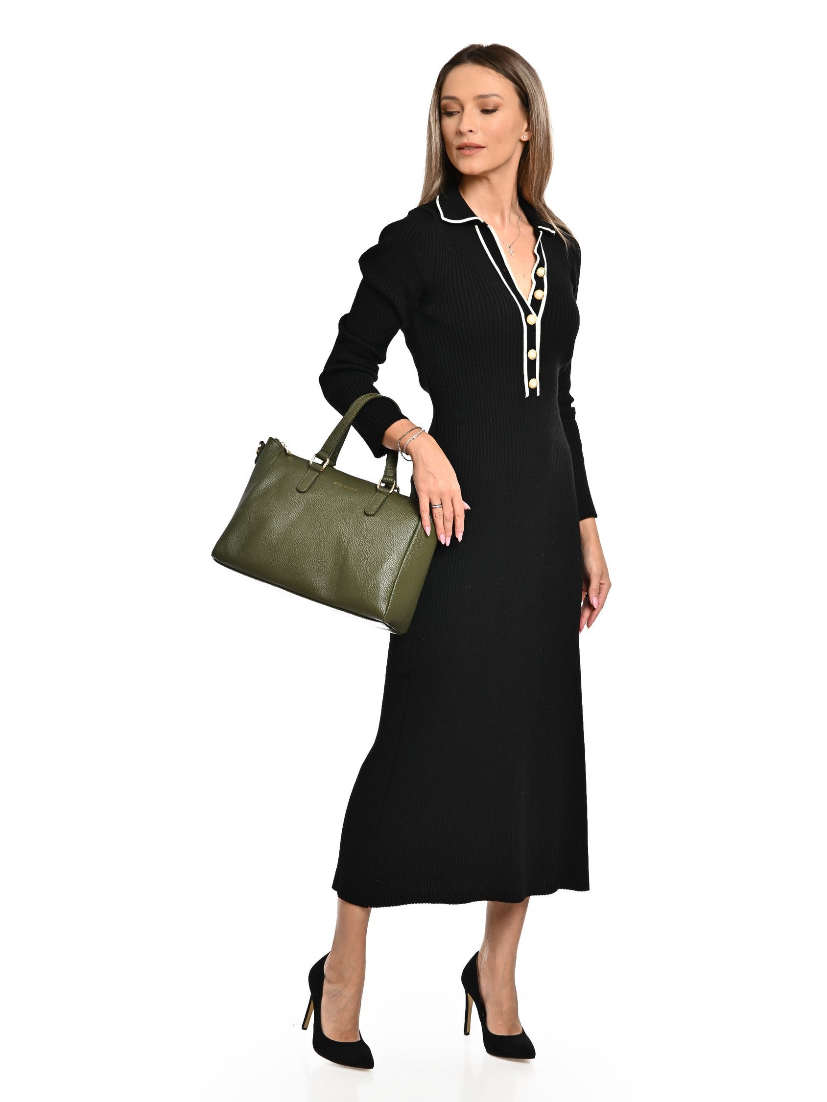 Borsa a mano Bettina in vera pelle VERDE MILITARE
