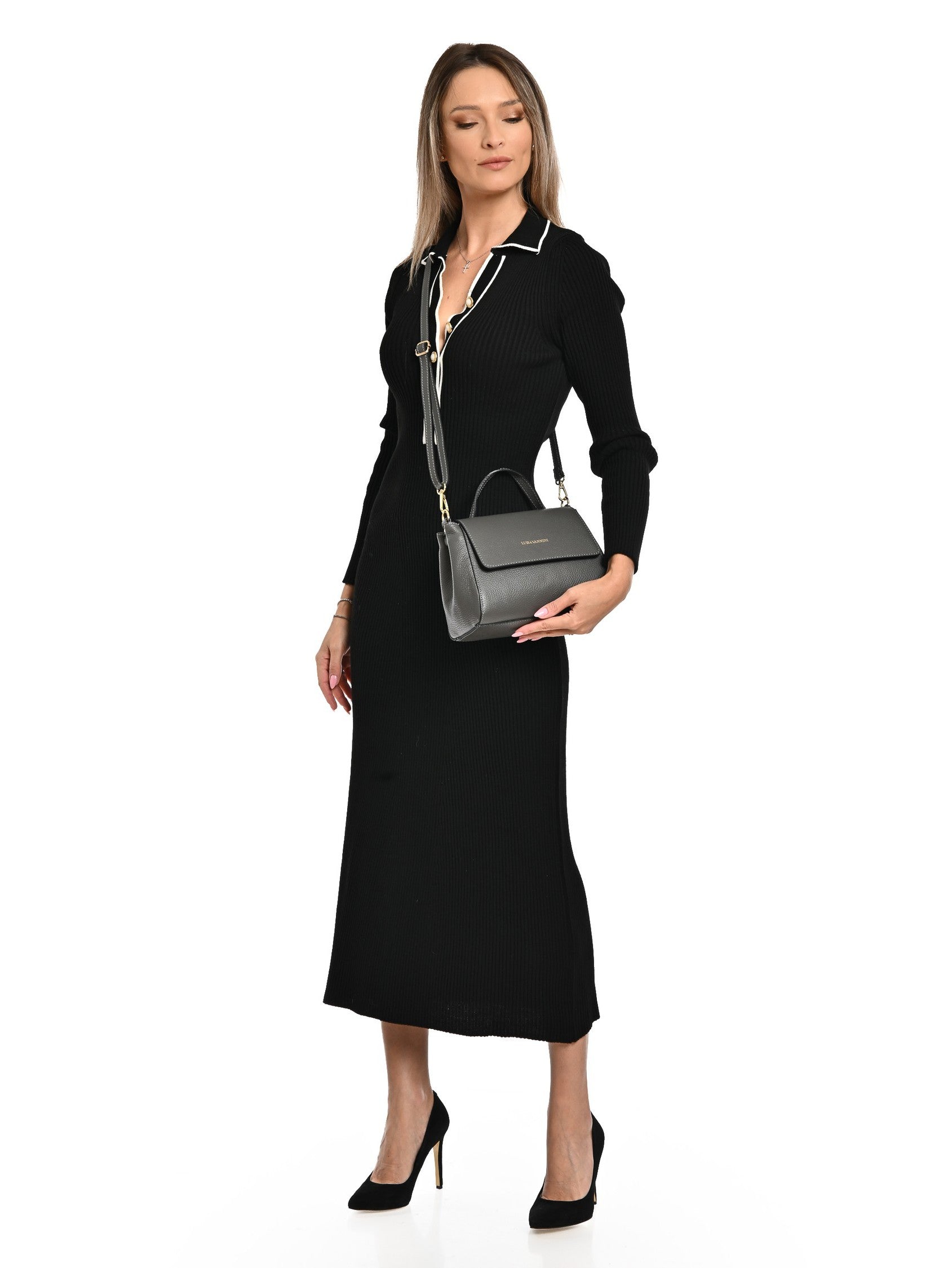 Borsa Sofia, pelle naturale, grigio