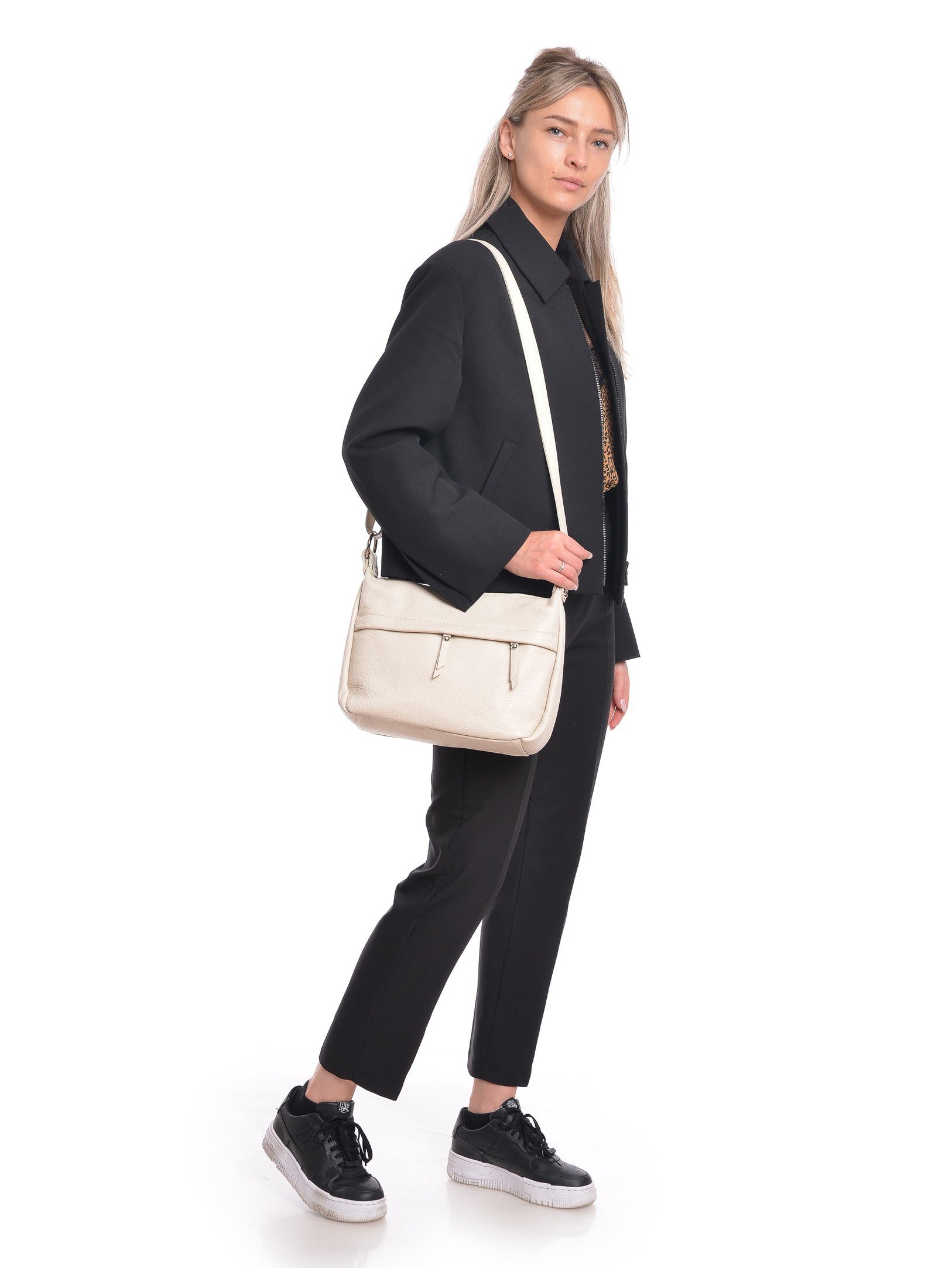 Borsa a tracolla Verdiana beige in vera pelle