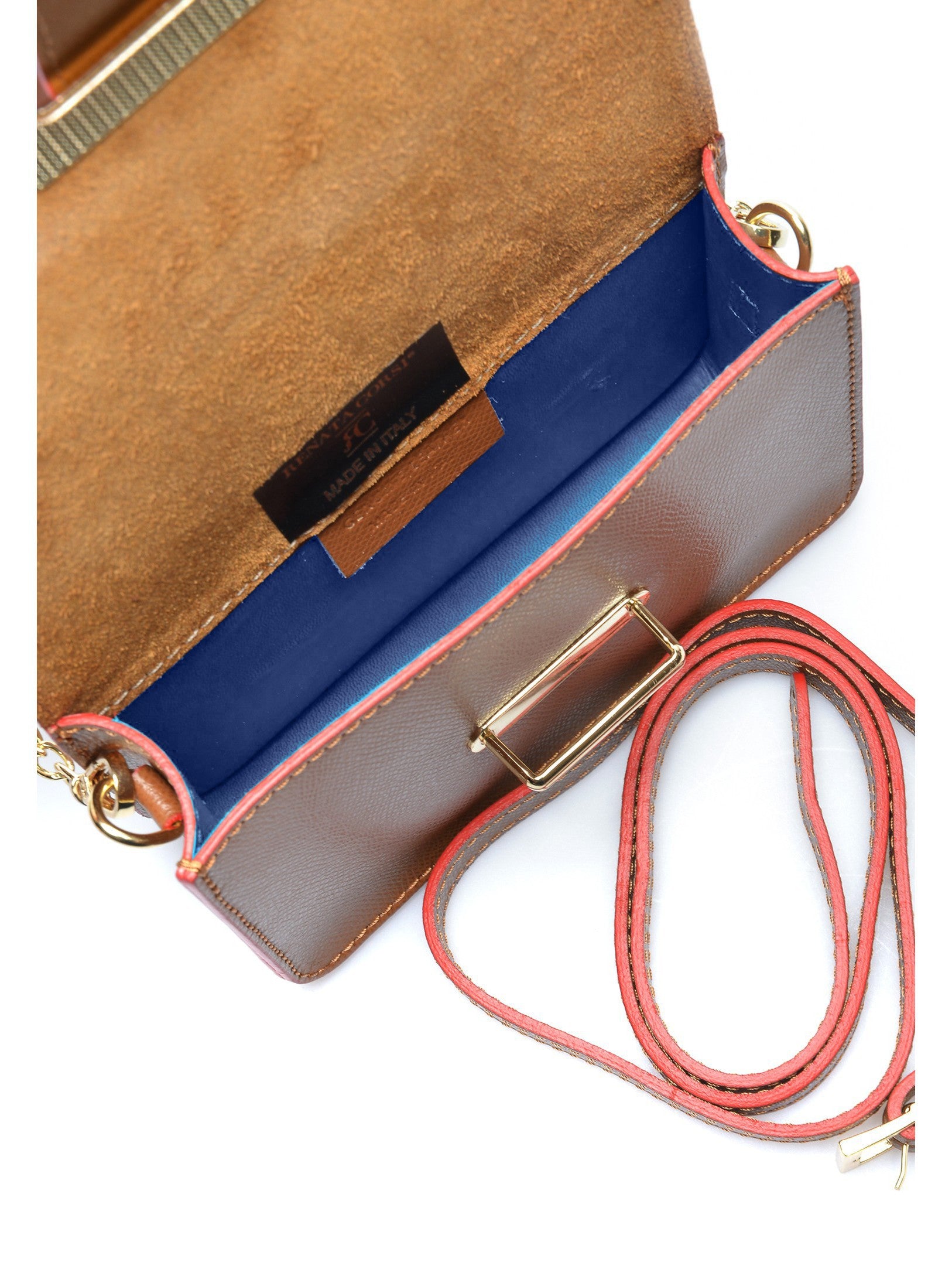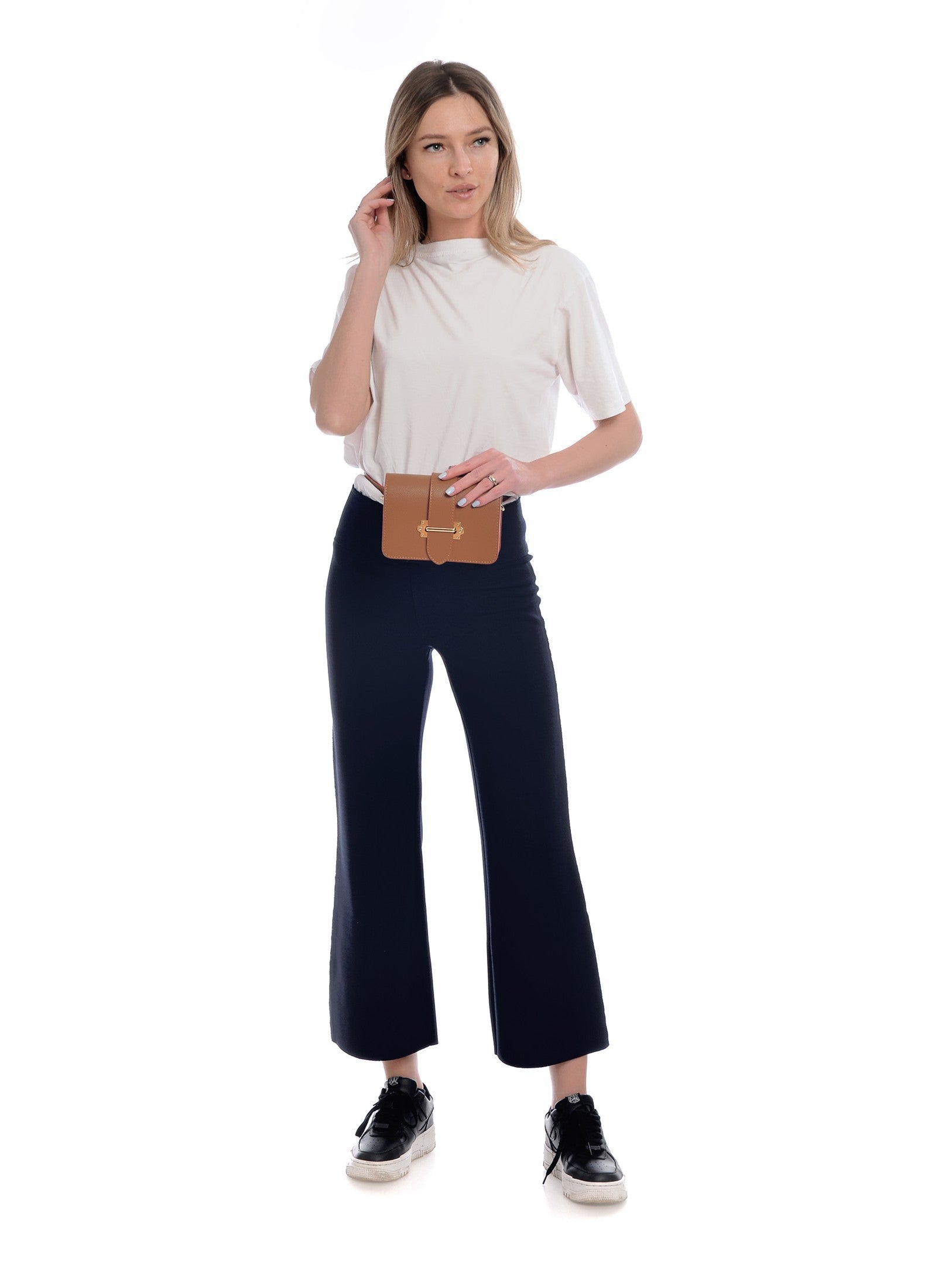 Il marsupio Renata Corsi è un accessorio moderno e versatile, ideale per ogni stile. Realizzato in vera pelle di vacchetta, coniuga eleganza e funzionalità. La chiusura frontale con patta garantisce sicurezza e le dimensioni compatte di 11x17,5x5 cm lo rendono perfetto per gli oggetti essenziali. È dotato di una catena regolabile da 110 cm per indossarlo a spalla e di una tracolla fissa da 100 cm per indossarlo in vita. Che tu scelga di indossarlo a tracolla o come borsa a mano, questo accessorio aggiunge un tocco di stile a qualsiasi outfit.