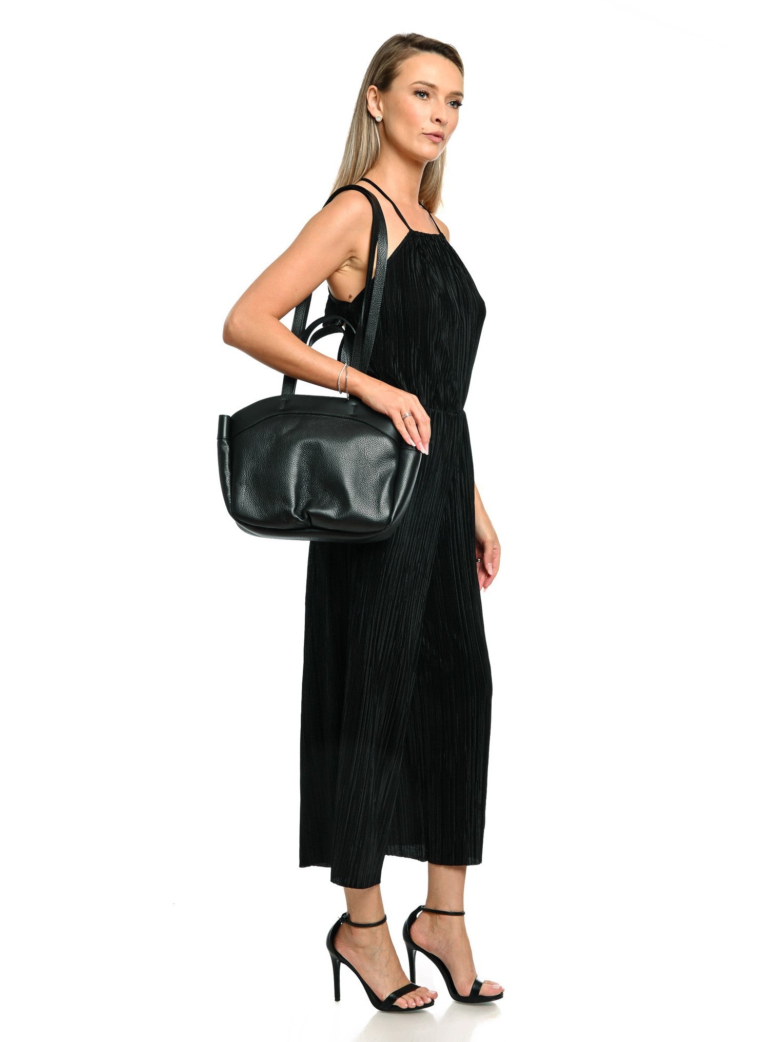 Geanta de umar Anna Luchini este confectionata din piele naturala 100% si combina stilul cu functionalitatea. Se inchide usor printr-un sistem magnetic si include un pouch detasabil cu fermoar pentru organizare suplimentara. Cu dimensiuni de 27x29x7 cm si doua manere de 36 cm si 88 cm, geanta ofera multiple variante de purtare, fiind potrivita atat pentru tinute casual, cat si pentru ocazii speciale.