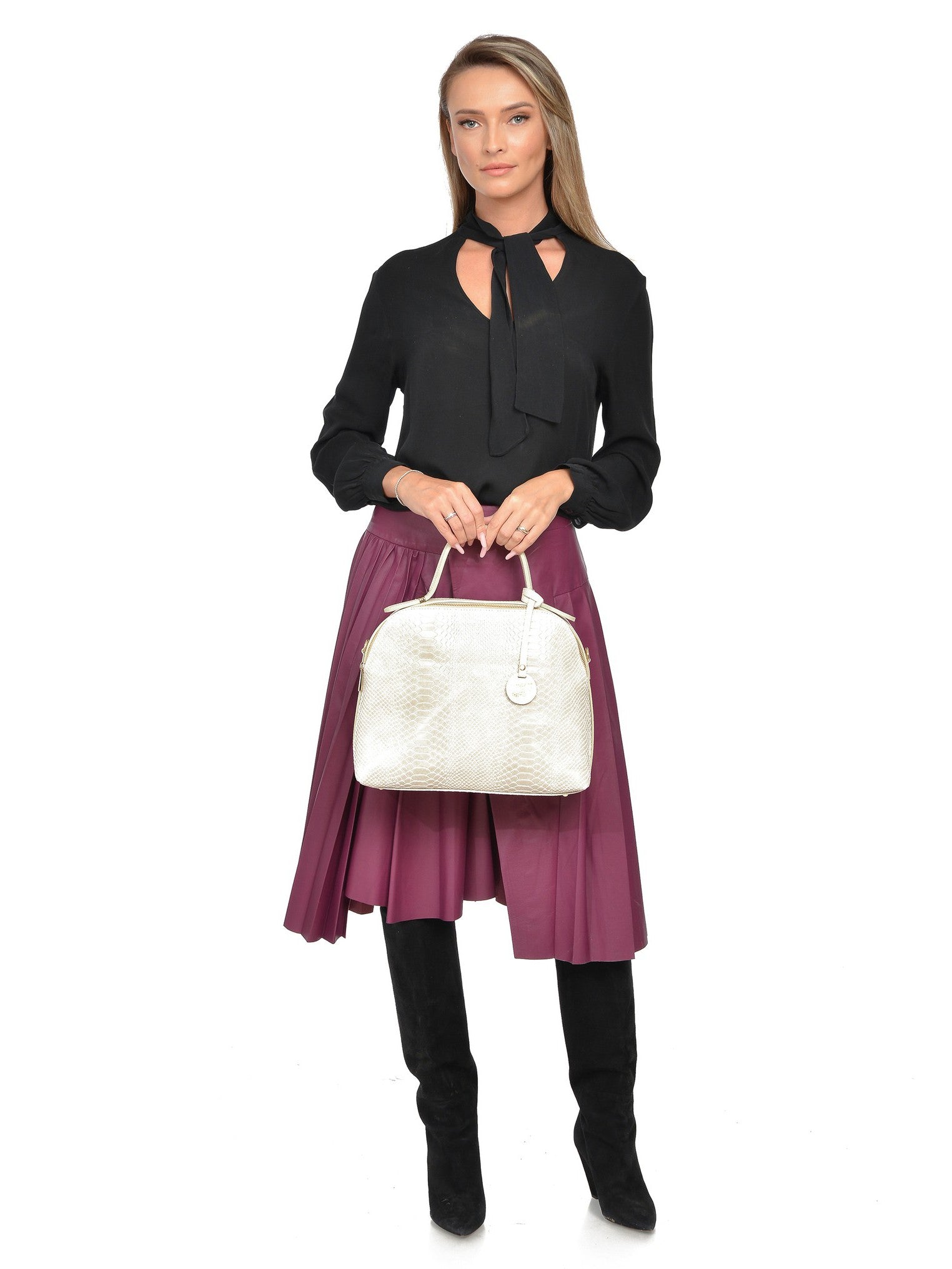 Carla Ferreri Geanta de mana Bianca piele naturala Bej