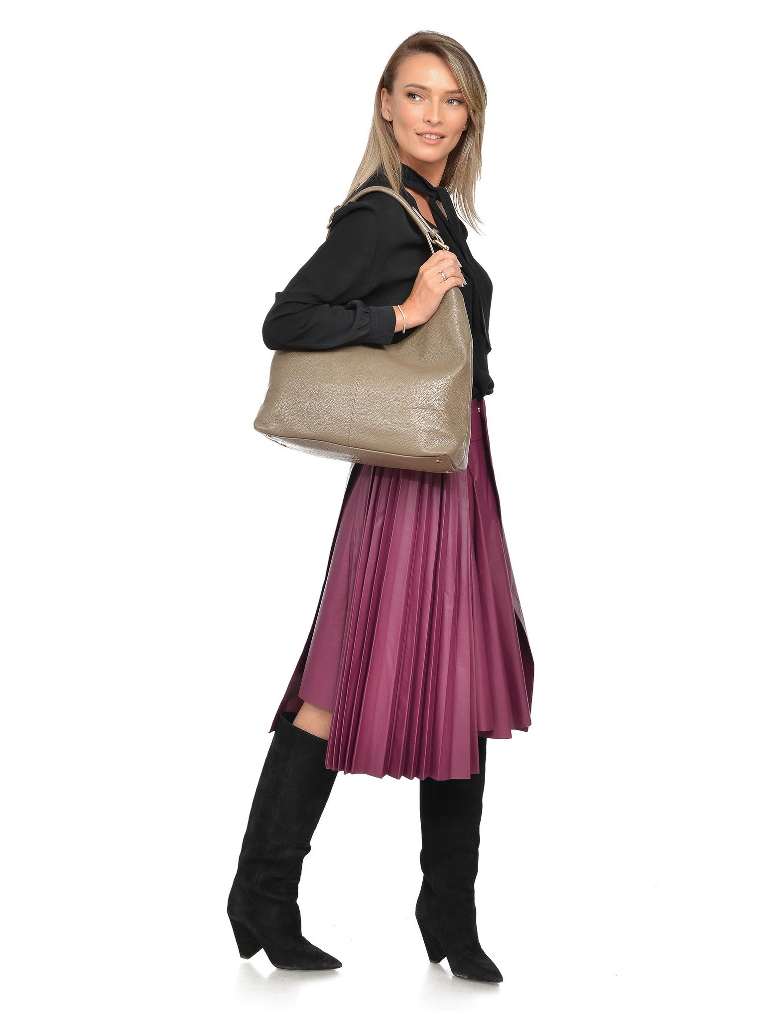 Carla Ferreri Geanta de umar Augusta piele naturala taupe