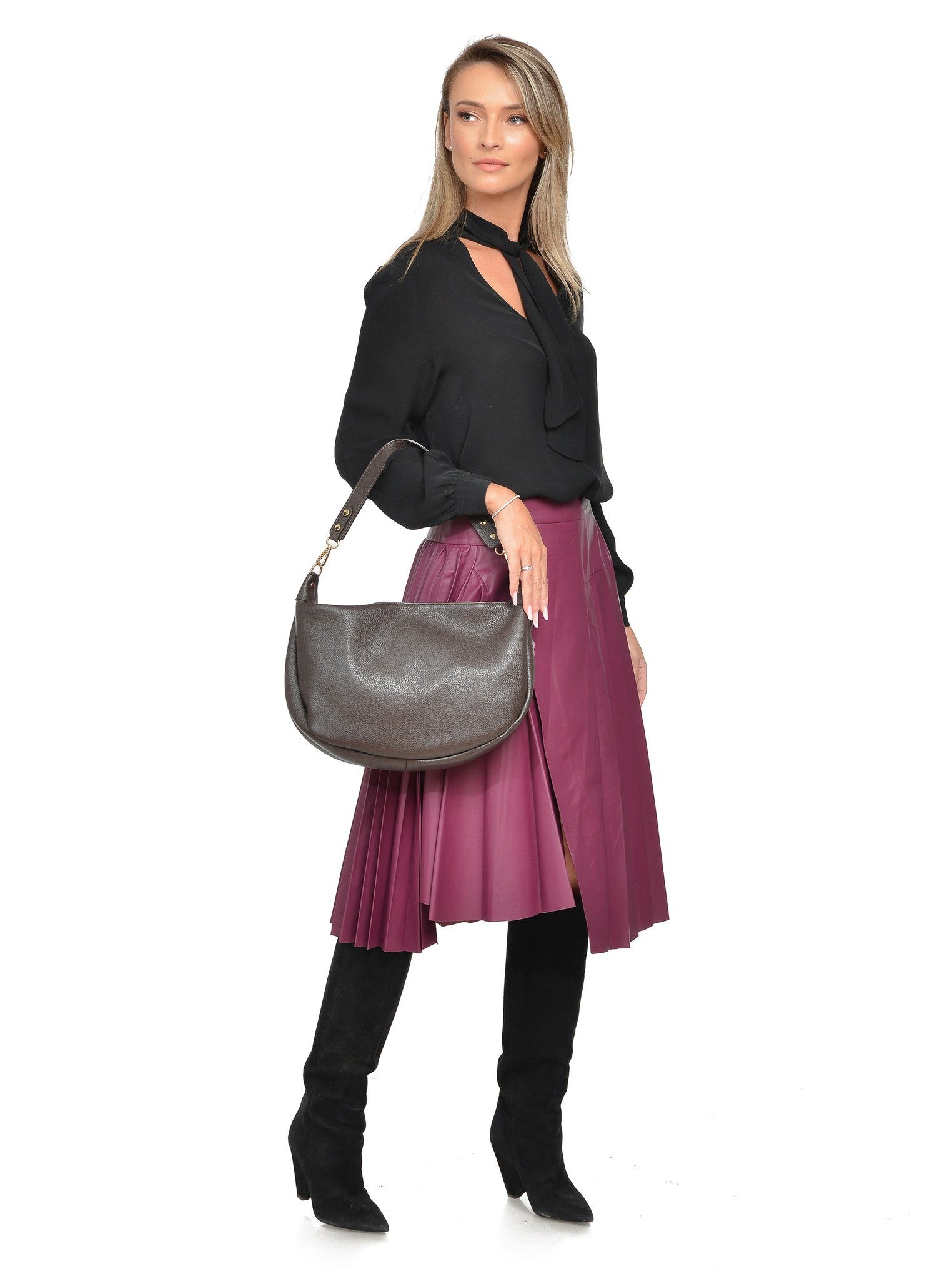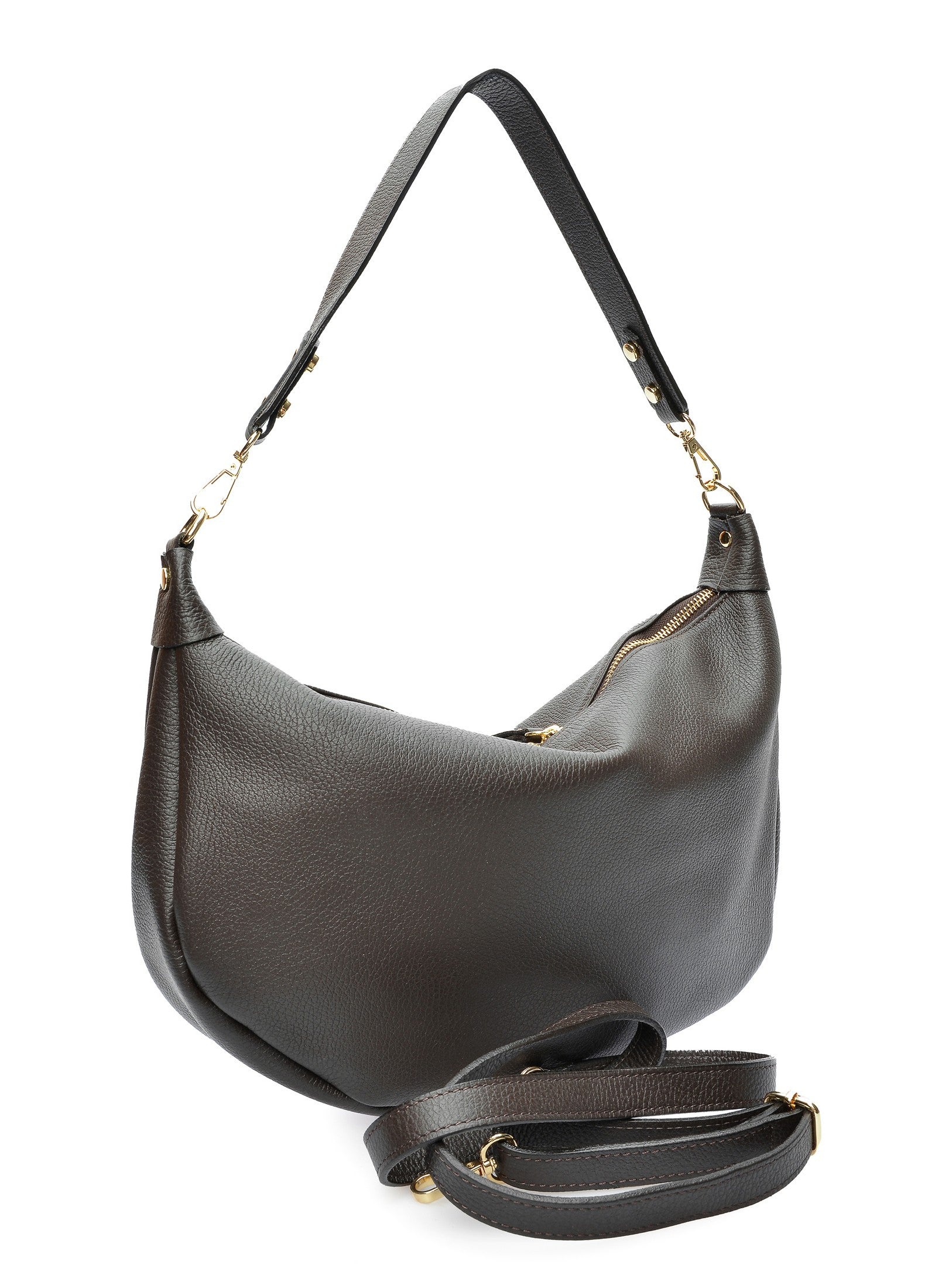 Exprimă-ți stilul boem cu geanta hobo de la Isabella Rhea, un accesoriu plin de personalitate. Realizată din 100% piele naturală de vacă, această geantă de 21 x 31.5 cm este o declarație de stil, cu detalii bogate cu franjuri pe laterale și la bază, ce adaugă mișcare. Este securizată cu fermoar și are un interior practic, cu buzunar. Versatilitatea este un punct forte: alege bareta de umăr lată de 51 cm pentru un look hobo clasic sau folosește bareta lungă, detașabilă, de 120 cm pentru a o purta crossbody.