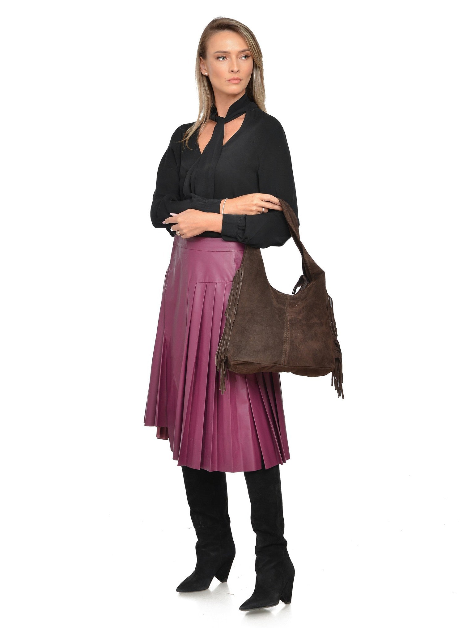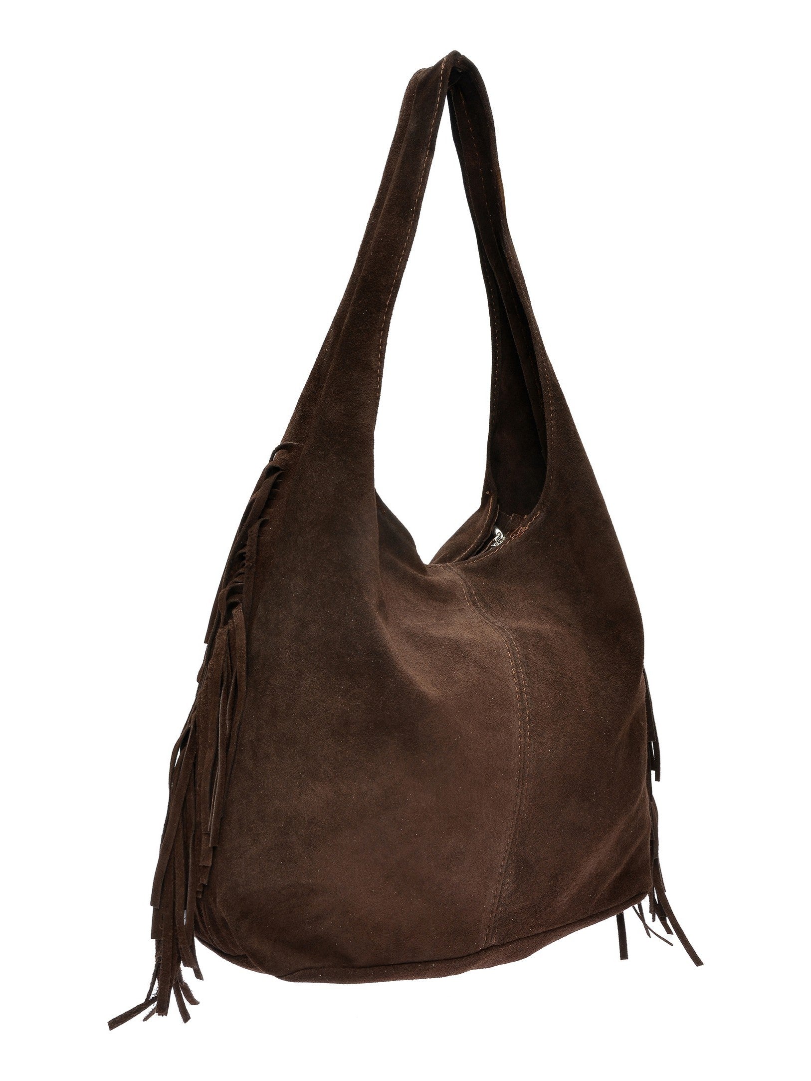 Adoptă un stil boem-șic cu geanta hobo de la Isabella Rhea. Realizată din 100% piele întoarsă fină, această geantă spațioasă de 30 x 39 x 12 cm este definită de detaliile cu franjuri laterale, care adaugă personalitate și mișcare oricărei ținute. Interiorul ne-căptușit dispune de un buzunar cu fermoar pentru esențiale, iar închiderea superioară cu capsă magnetică este rapidă și practică. Mânerul lung de 50 cm asigură o purtare confortabilă pe umăr, completând perfect look-ul relaxat și rafinat.