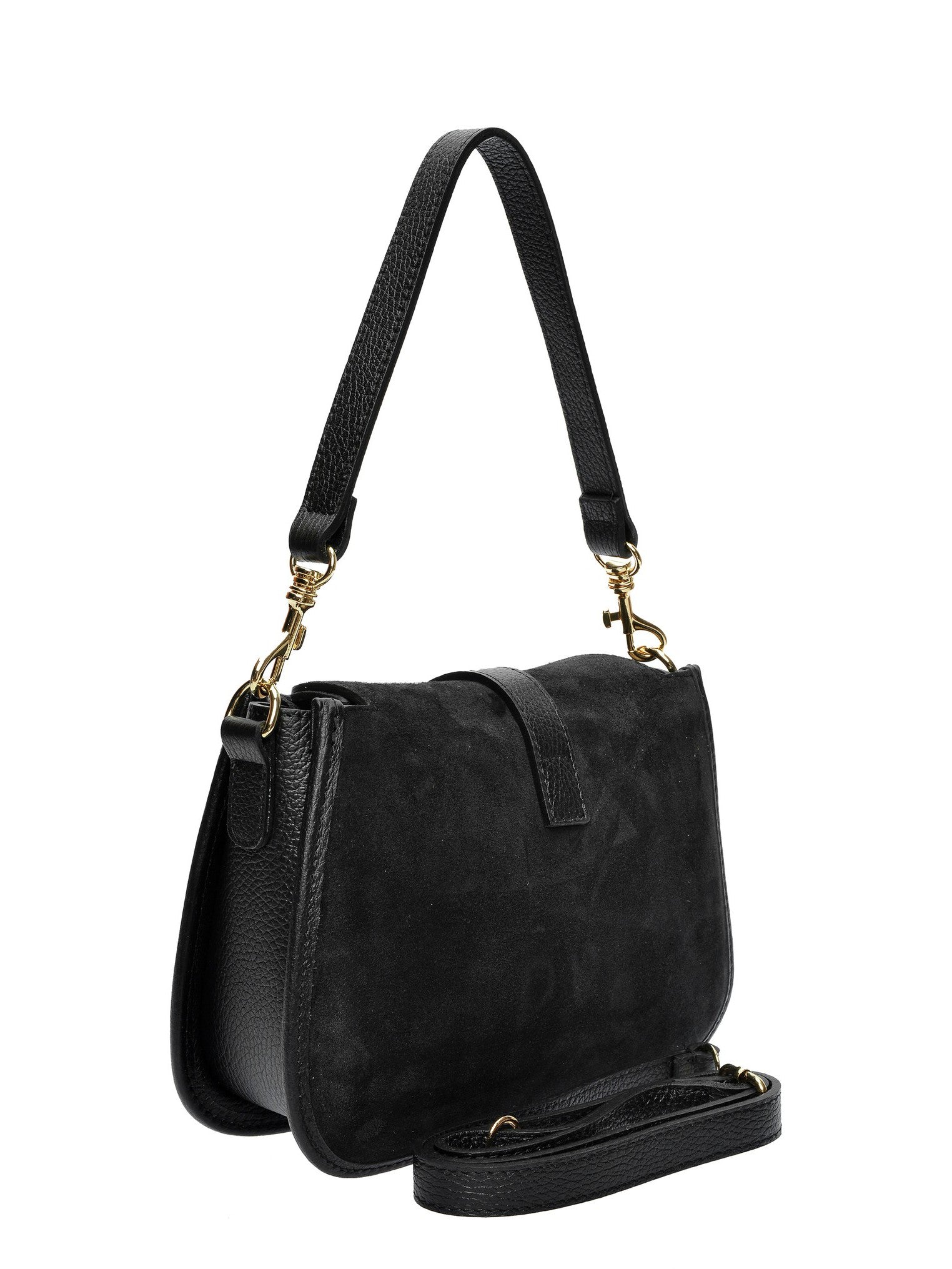 Descoperă geanta de mână de la Isabella Rhea, un model ce îmbină textura rafinată a pielii întoarse cu un design versatil. Realizată din 100% piele suede, această geantă de 17.5 x 24 x 6.5 cm este securizată cu o clapetă elegantă cu închidere metalică rotativă (twist-lock). Interiorul căptușit dispune de un buzunar cu fermoar pentru a-ți păstra organizate lucrurile esențiale. Flexibilitatea este excepțională: poart-o de mânerul de 44 cm pentru un look de umăr sofisticat sau atașează bareta ajustabilă și detașabilă de 120 cm pentru stilul crossbody.