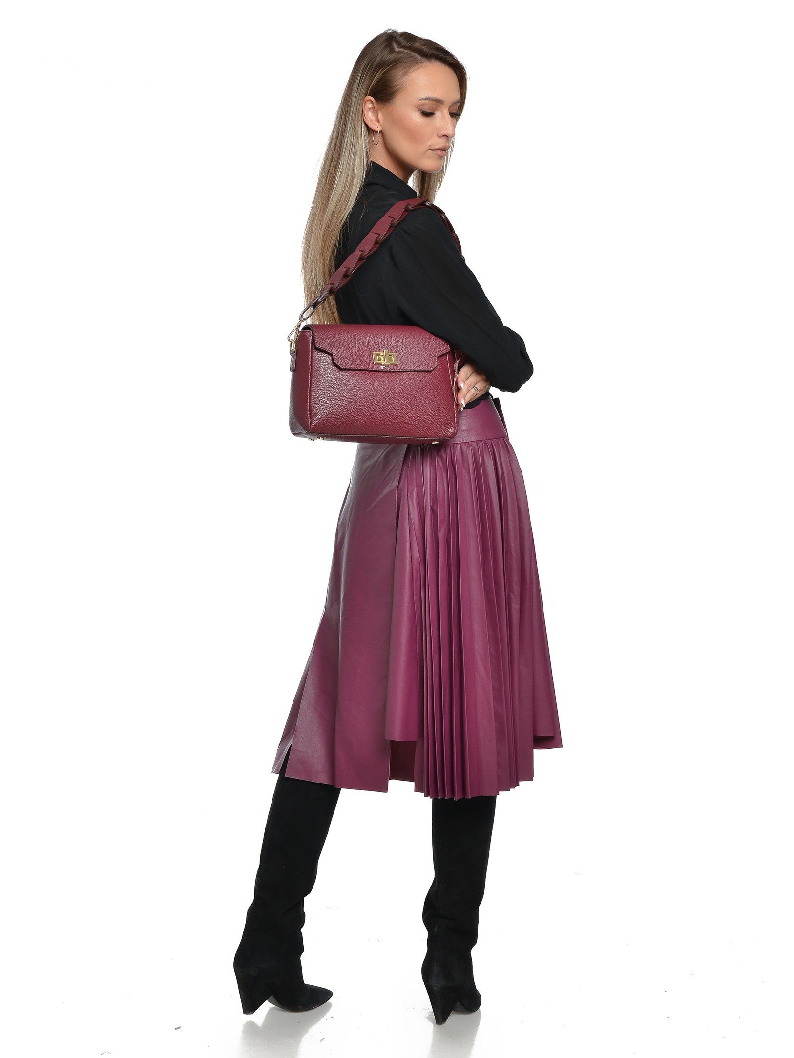 Roberta M Geanta de umar Gabriella piele naturala Bordo